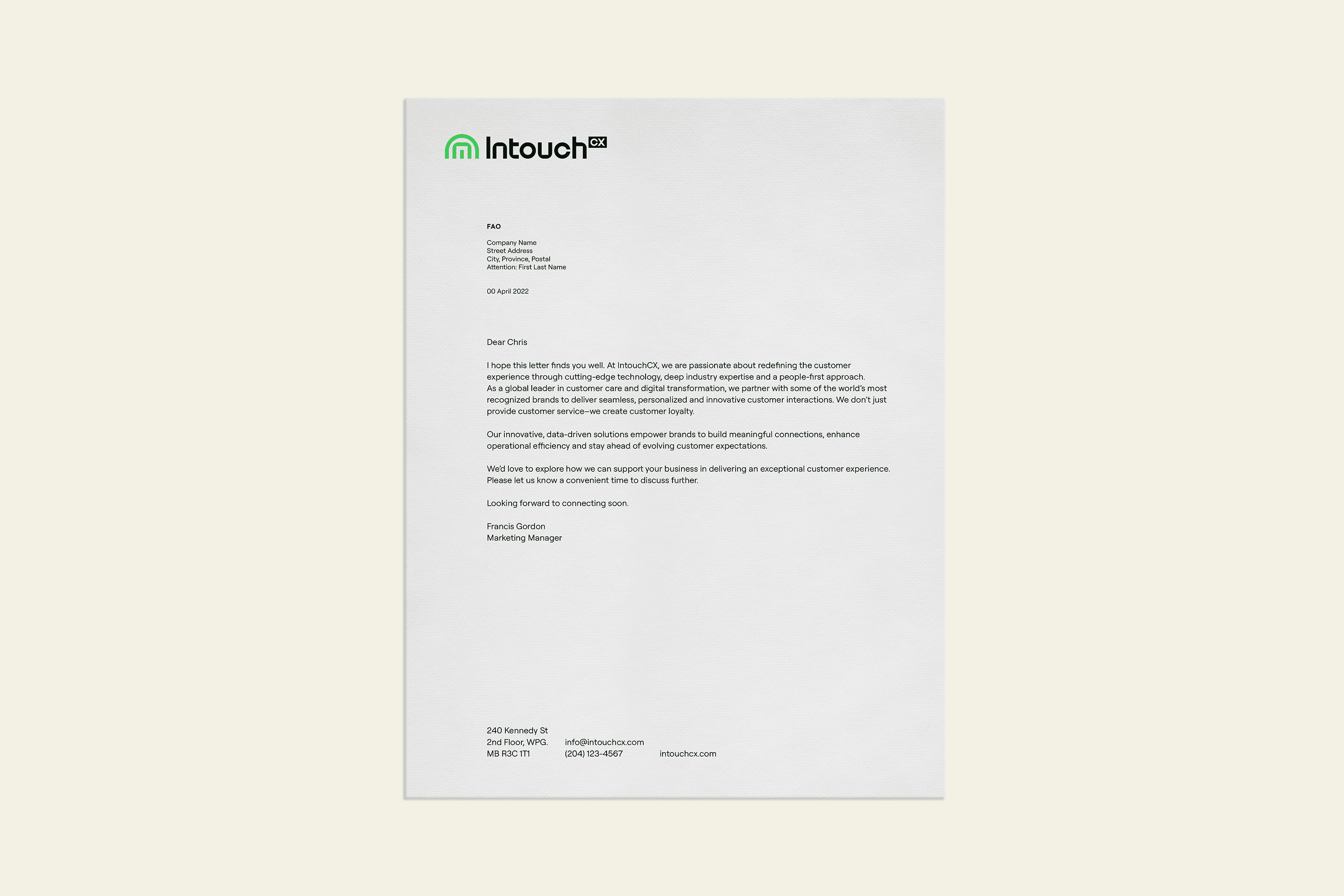 IntouchCX, a Canadian-born company with a global footprint, has long been the invisible backbone powering customer experience for Fortune 500 brands. But after two decades, the identity that once marked them as innovators had grown stale, risking being overshadowed by younger, faster competitors. The rebrand was an opportunity to shed the constraints of the past and reassert IntouchCX as a confident, forward-thinking leader in customer experience.